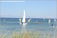 ...nach den sehr windigen letzten Tagen, ist am Schönberger Strand wieder der Sommer eingekehrt. Für den Wassersport (mit Segel) fast schon zu wenig Wind. Selbst die Lenkdrachen flogen an diesem Tag nur auf halber Höhe über den Deich vor den Fischerhütten. Für einen Anfängerkurs im Surfen oder Segeln in der Wassersportschule „Wetwind“ genau das richtige Wetter.