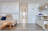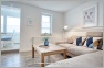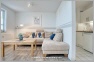 Der großzügige Hauptbereich im Wohnzimmer ist lichtdurchflutet und im skandinavisch-maritimen Stilgehalten: