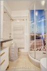 Genießen Sie Ihren Morgenkaffee oder laue Sommerabende auf dem Balkon. Von hier aus haben Sie einen kleinen, seitlichen Meerblick und können außerdem die frische Seeluft genießen. Das helle, gepflegte Badezimmer ist modern und funktional gestaltet. Die Dusche mit dem Strandmotiv schafft eine entspannende Atmosphäre. Ein beheizter Handtuchhalter sorgt für zusätzlichen Komfort. Für die mitgebrachten Badeutensilien gibt es ausreichend Schrankplatz. Auf Anfrage ist in dieser Fewo der Urlaub mit Hund möglich. Ein kostenloser, eigener Parkplatz steht direkt am Haus bereit.