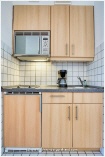 Die offene Küche ist separat angelegt und für die Selbstversorgung ausgestattet. Zur Küchenausstattung gehören unter anderem ein Herd, ein Kühlschrank, eine Spüle, eine Mikrowellesowie Geschirr und Kochutensilien für den täglichen Bedarf. Damit ist eine eigenständige Verpflegung während des Aufenthalts möglich.